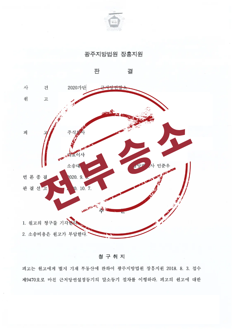 배우자 명의 부동산, 근저당권 말소소송 전부 승소