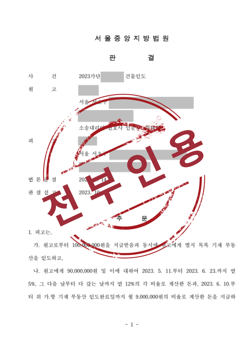 민준우 변호사는 단순히 건물 인도 청구만이 아니라, 미지급된 월세 전액과 건물 인도 시점까지 발생할 ‘부당이득’ 청구도 함께 병합하여 임대인의 실질적인 손해 회복을 도모하였습니다. 이러한 종합적인 접근은 단지 점유 회복에 그치지 않고 금전적 손해까지도 법적 보상을 가능케 하는 전략입니다.