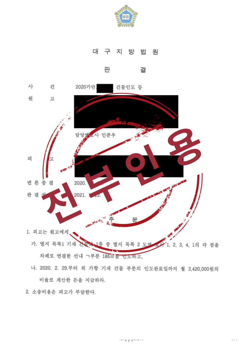 이에 의뢰인은 결국 법무법인 로연을 통해 건물 인도 및 손해배상(부당이득) 청구 소송을 제기하게 되었습니다.