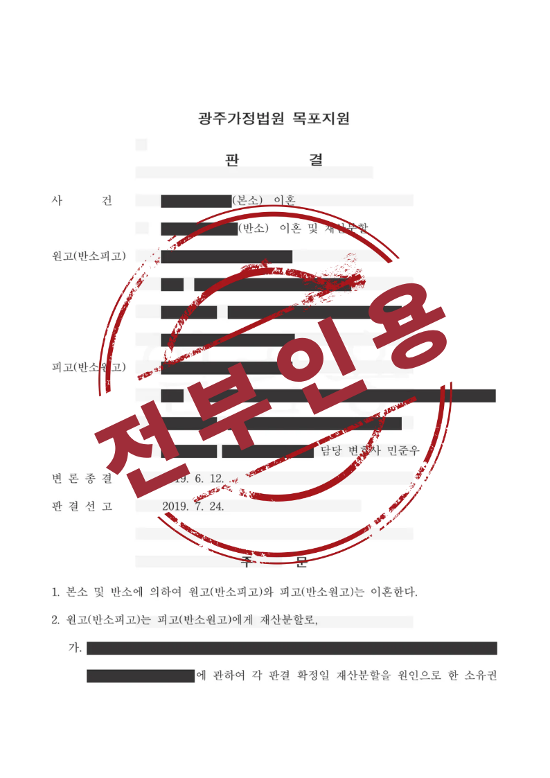 가사 전담 주부의 이혼 소송, 재산분할 성공사례